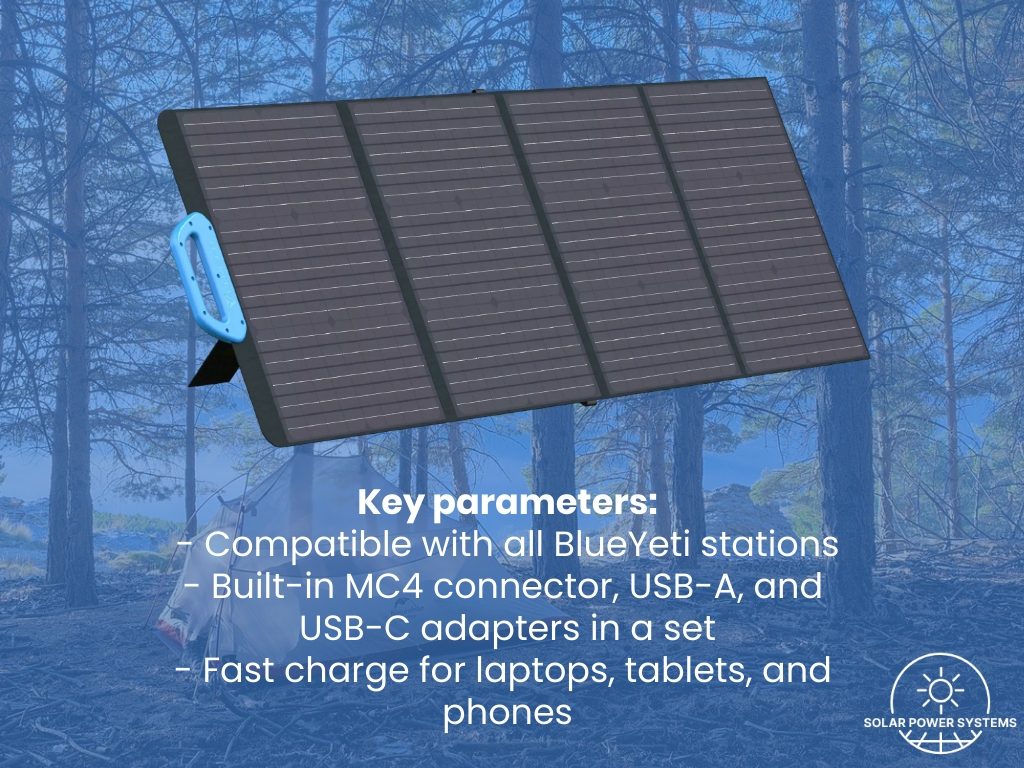 It’s an efficient, durable option compatible with all Bluetti power stations. It suits campers, hikers, and anyone who wants to harness the sun’s power to charge devices or appliances off-grid.