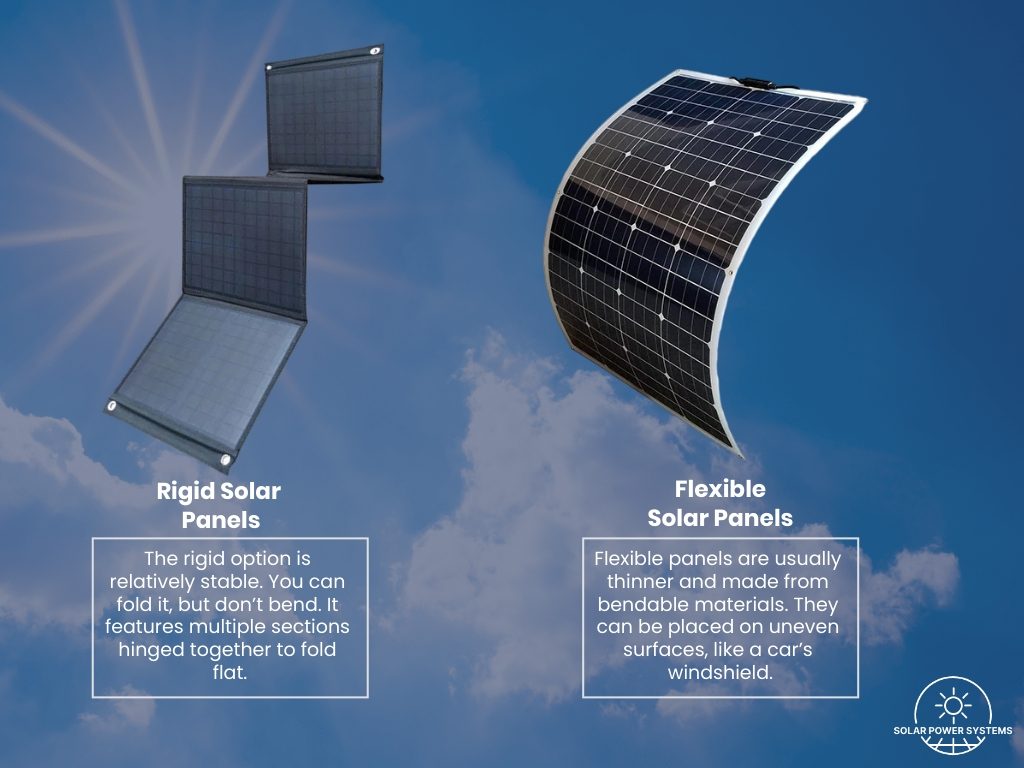 2. Flexible panels are usually thinner and made from bendable materials. They can be placed on uneven surfaces, like a car’s windshield.