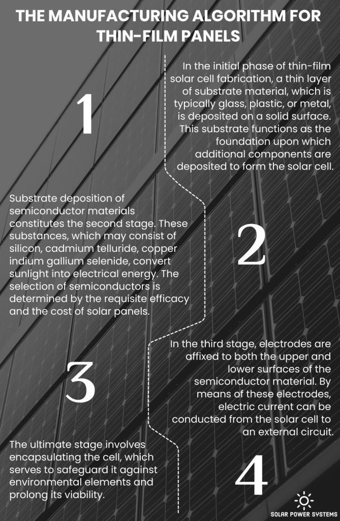The manufacturing algorithm for thin-film panels consists of the following steps: