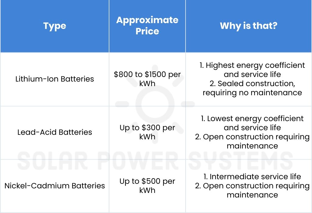 In addition to the type of solar battery system, the price depends on several factors: