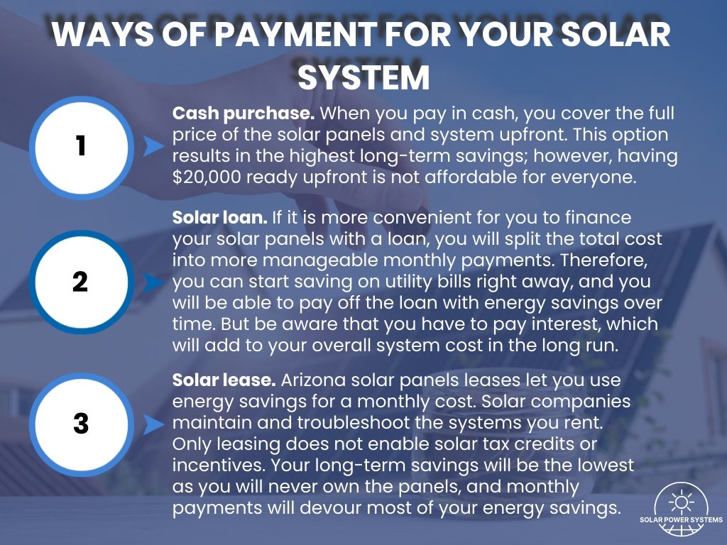 The cost of your solar system depends on number of panels you need to power your house. Your solar panel will produce more energy here than in other states because Arizona gets a lot of sunshine. Shade, wiring, and inverter efficiency costs must be considered since no system is 100% efficient.
