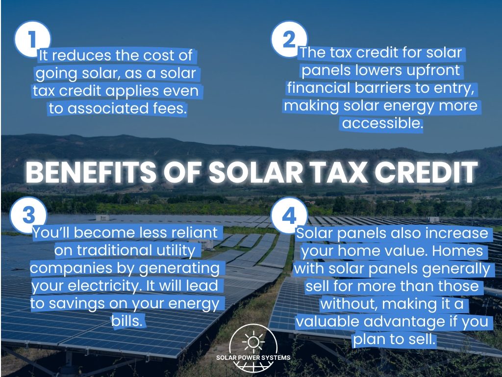 A solar tax credit offers various personal and environmental benefits: