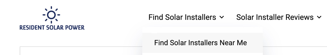 Go to the Resident Solar Power website. In the top navigation menu, select “Find Solar Installer” → “Near Me.” Great! You’re in.
